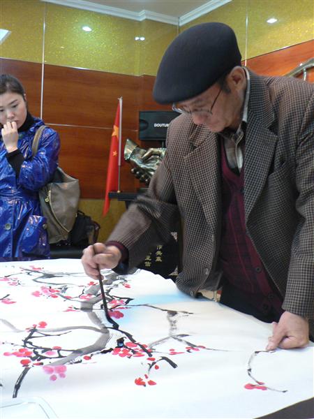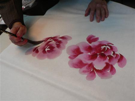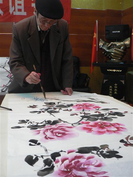 为图喜庆 老人家画下牡丹花