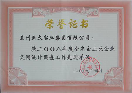 2009327日,经国家统计局甘肃视察总队年度事情考核评定,对2008年全甘肃省企业及企业集团,统计视察单位进行综合考评,结合全年各项事情状况、行业生长实力、专项事情治理、效率等方面全方位考评,决定对:甘肃稀土集团有限公司、甘肃祁连水泥集团股份公司、金川集团有限公司、兰州k8凯发天生赢家一触即发集团有限公司、兰州民百(集团)股份有限公司等,49家甘肃省内企业及企业集团,评为“2008年统计视察事情先进单位”。